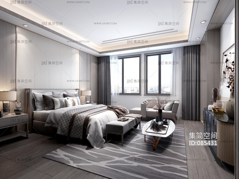 现代简约卧室 3d模型下载 [模型ID:85431]