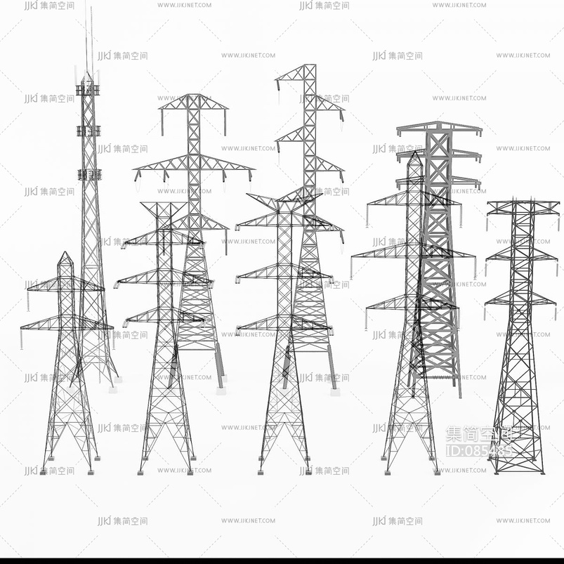 高压电线塔信号塔,电线塔, 3d模型下载 [模型ID:85485]