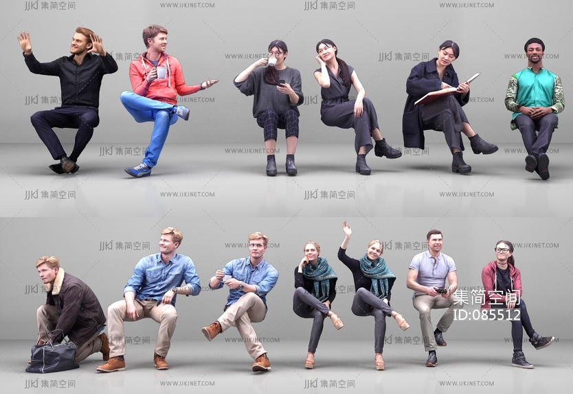 现代坐姿男女青年人物,坐在的人物 3d模型下载 [模型ID:85512]