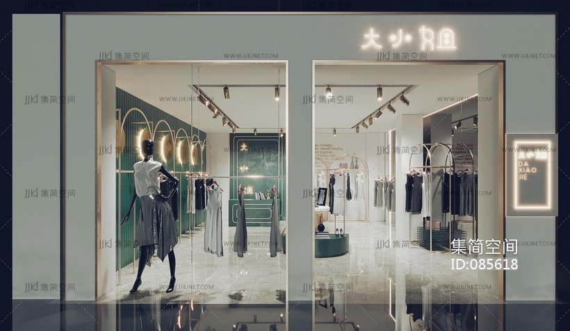 女装服装专卖店,模特衣服货架门头 3d模型下载 [模型ID:85618]