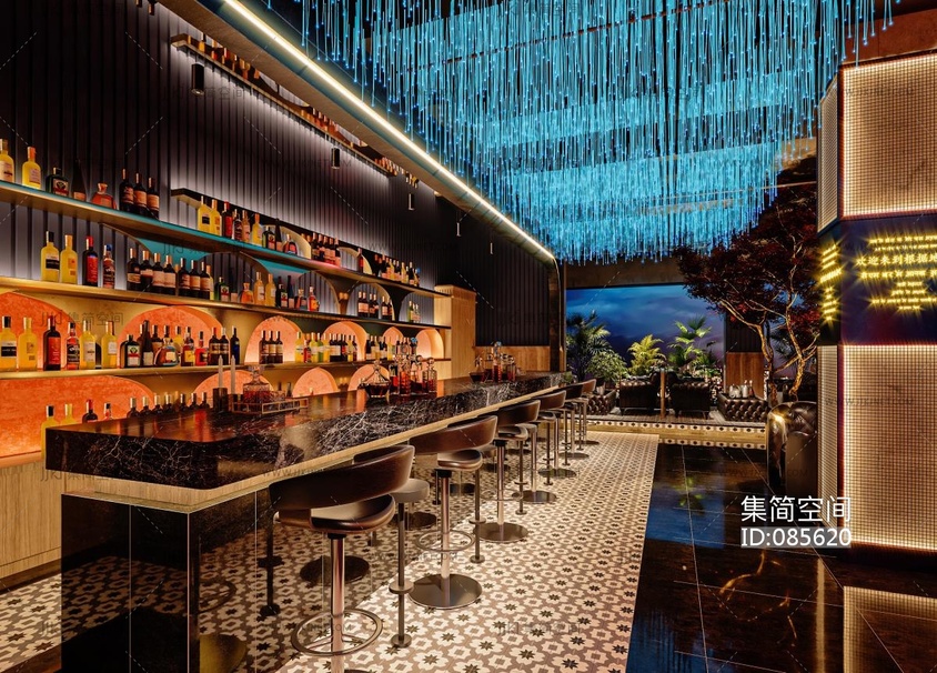 轻奢酒吧,酒柜酒瓶子 3d模型下载 [模型ID:85620]