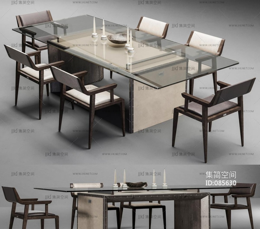Compass现代餐桌椅组合 3d模型下载 [模型ID:85630]