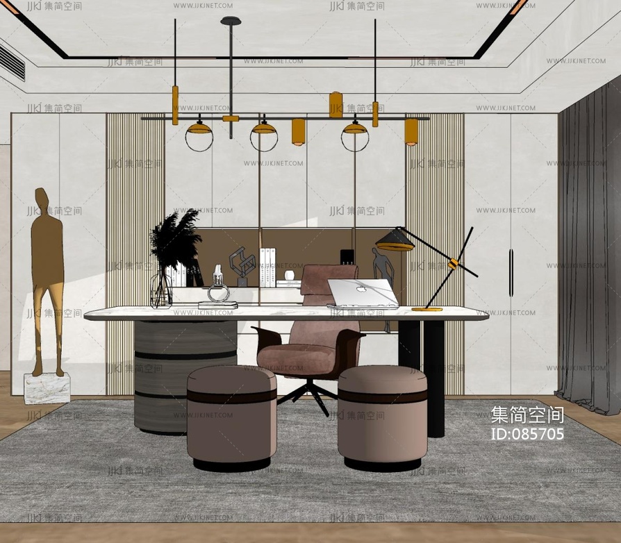 z15-0609现代书房,书桌椅,抽象人物雕塑长条吊灯-1 su草图模型下载 [模型ID:85705]