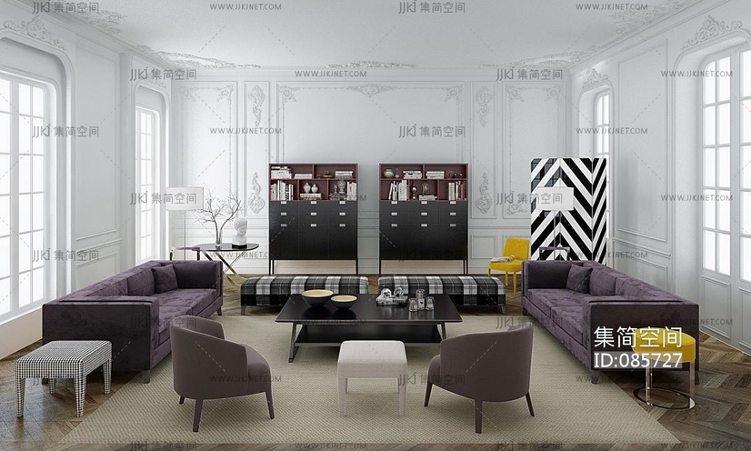 现代法式客厅装饰柜 3d模型下载 [模型ID:85727]