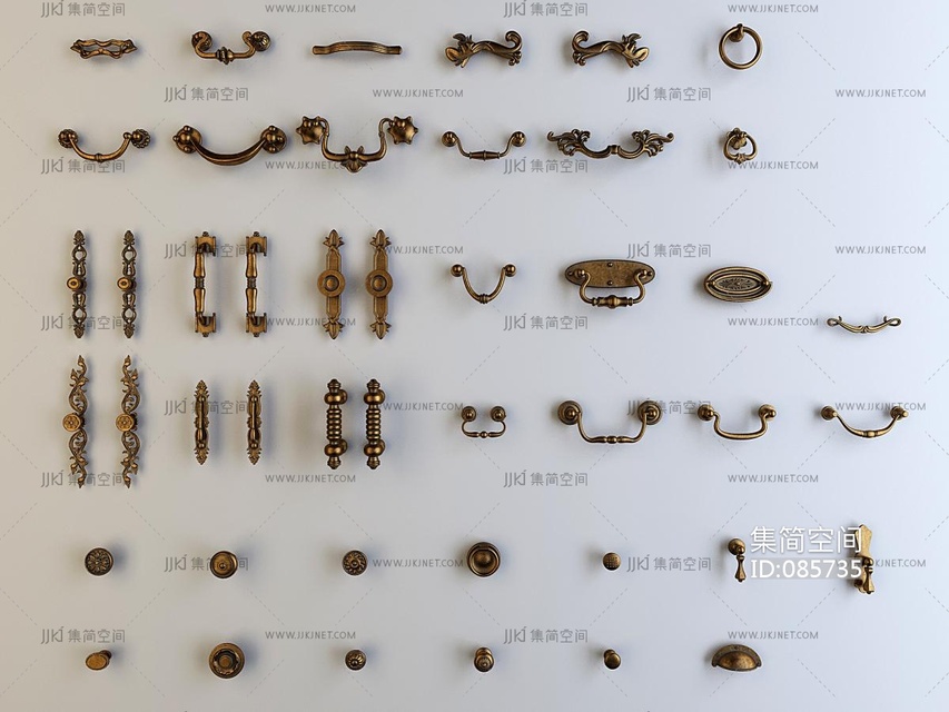 欧式门拉手,抽屉拉手构件 3d模型下载 [模型ID:85735]