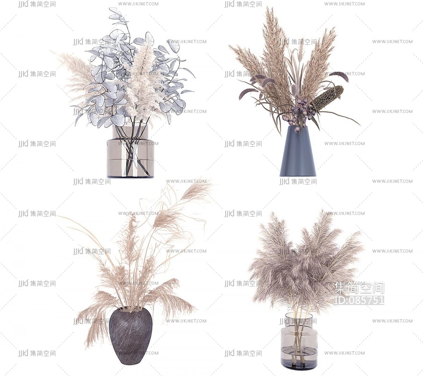 现代干花花瓶,枯草花瓶 3d模型下载 [模型ID:85751]