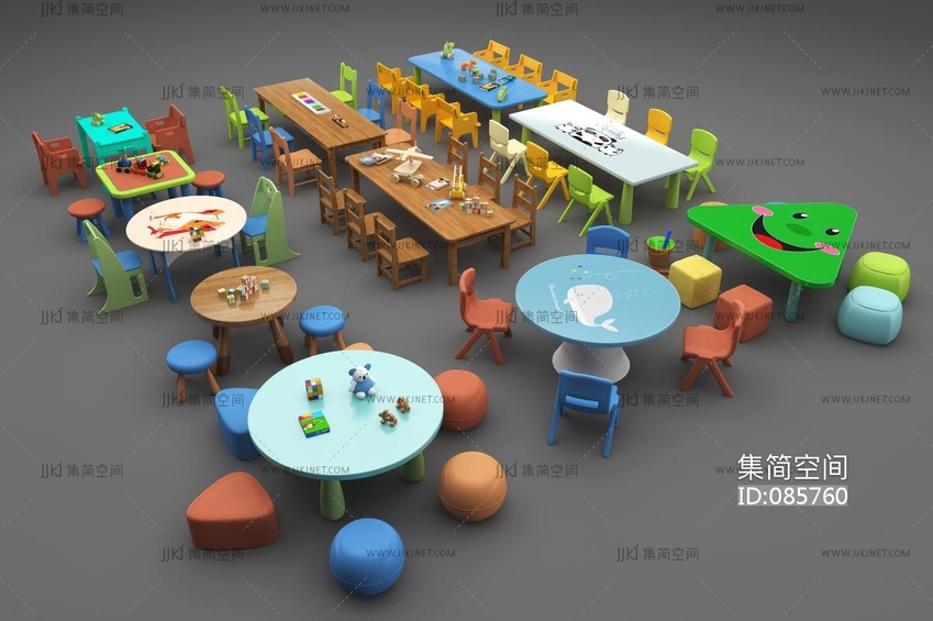 北欧儿童课桌椅,椅子 3d模型下载 [模型ID:85760]