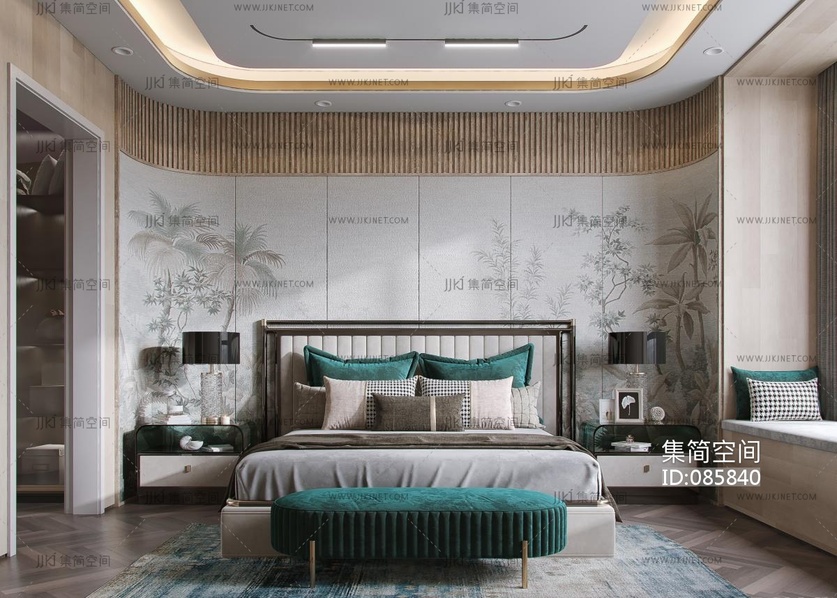 新中式现代简欧式卧室双人床,床头柜, 3d模型下载 [模型ID:85840]
