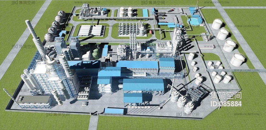 现代化工厂设备厂房建筑鸟瞰规划 3d模型下载 [模型ID:85884]