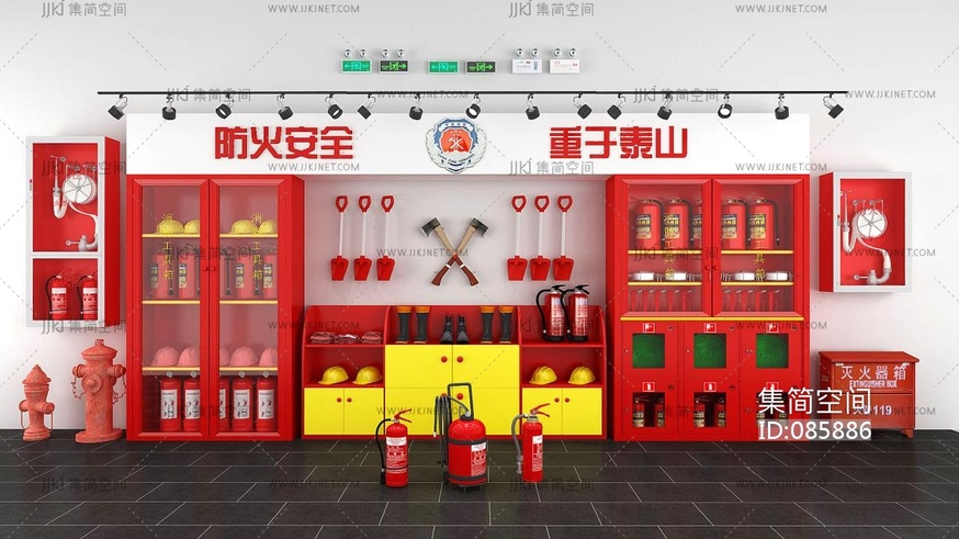 消防栓灭火器消防箱,消火栓,微型消防站,灭火器,应急照明灯安全出口 3d模型下载 [模型ID:85886]