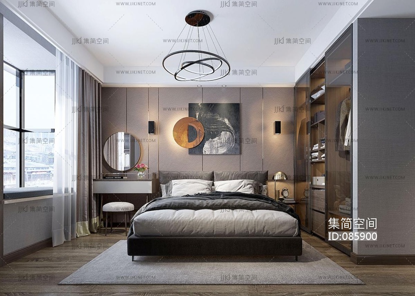 卧室,双人床,梳妆台,衣柜 3d模型下载 [模型ID:85900]
