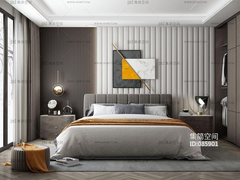 卧室,双人床,床头柜, 3d模型下载 [模型ID:85901]