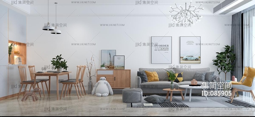 北欧客餐厅,沙发餐桌椅 3d模型下载 [模型ID:85905]