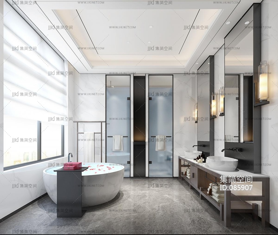 新中式卫生间浴室, 3d模型下载 [模型ID:85907]