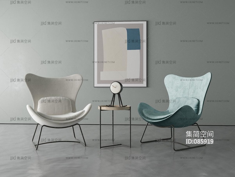 北欧绒布躺椅边几 3d模型下载 [模型ID:85919]