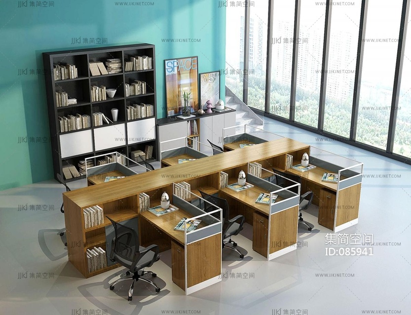 开敞办公办公桌椅,员工工位,文件柜 3d模型下载 [模型ID:85941]