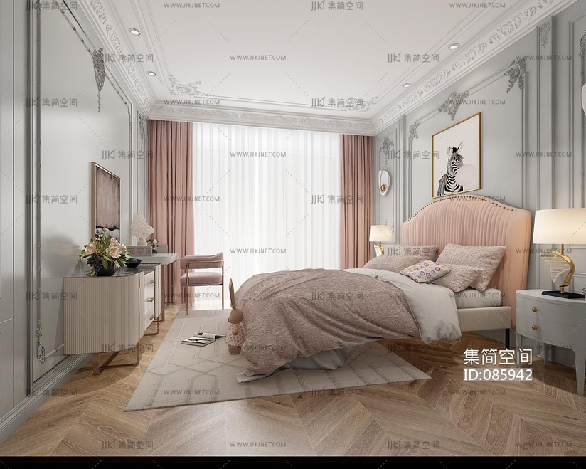 法式欧式轻奢卧室 3d模型下载 [模型ID:85942]