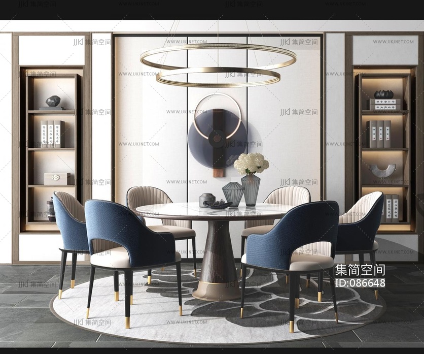 新中式圆形餐桌椅 3d模型下载 [模型ID:86648]