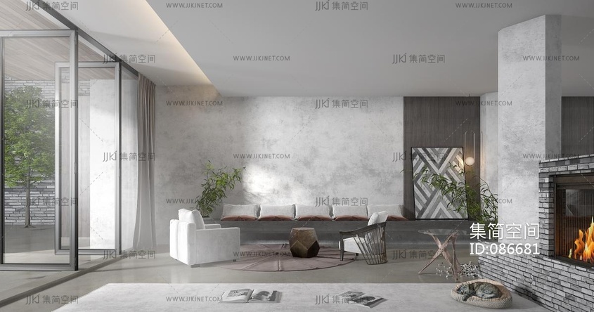 现代自然风客厅火炉 3d模型下载 [模型ID:86681]