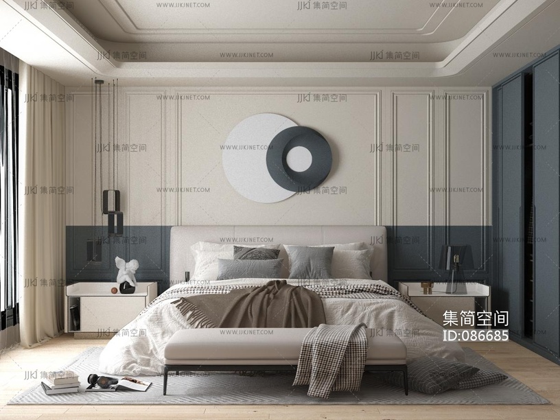 现代简欧式轻奢卧室,双人床,床头柜 3d模型下载 [模型ID:86685]