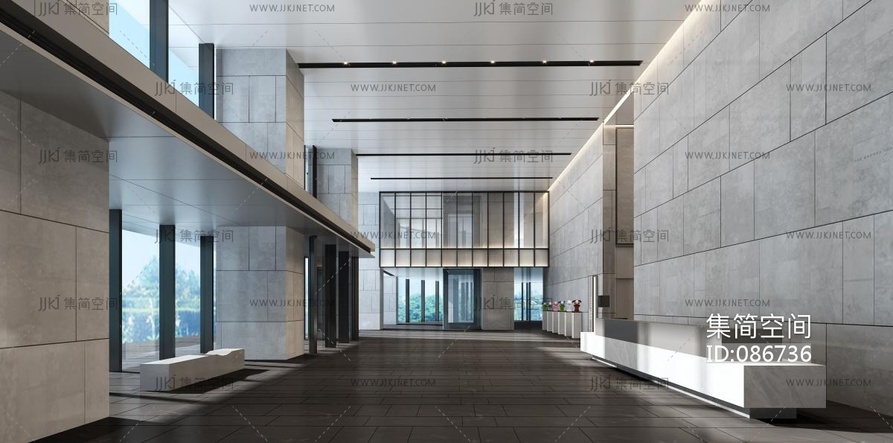 24现代办公大堂电梯厅, 3d模型下载 [模型ID:86736]