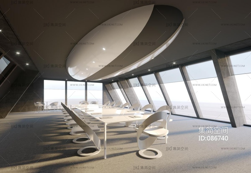 34现代小会议室,会议桌椅 3d模型下载 [模型ID:86740]