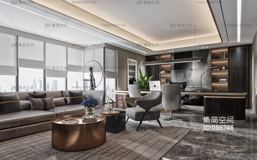 现代总经理办公室3d模型下载