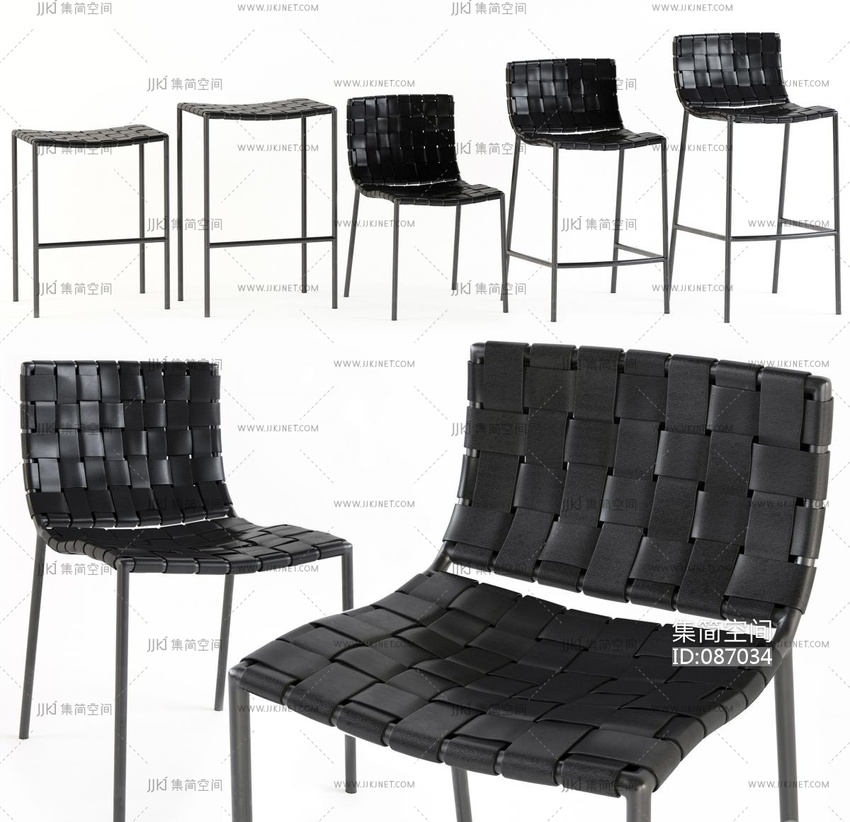 28现代皮革编织吧椅,椅子 3d模型下载 [模型ID:87034]