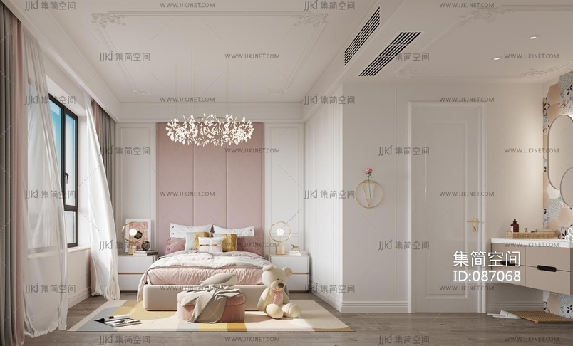简欧式法式女孩房,女儿房,儿童房,双人床, 3d模型下载 [模型ID:87068]