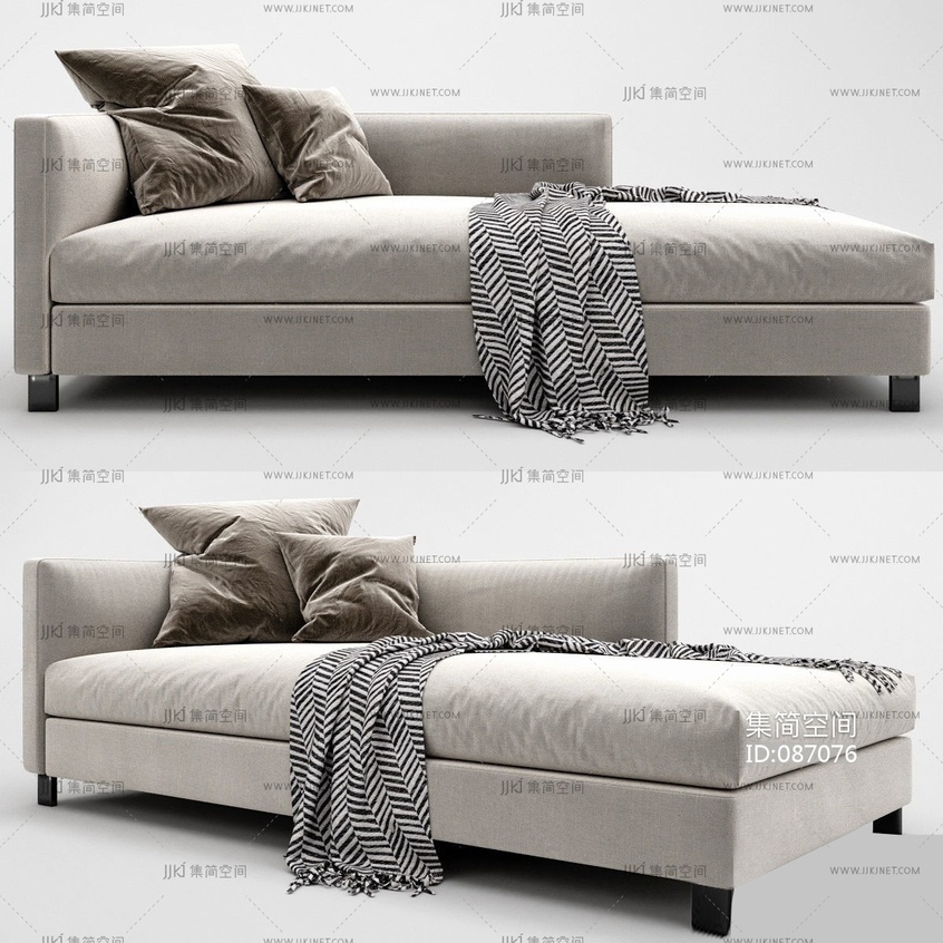 现代布艺沙发贵妃凳3d模型下载