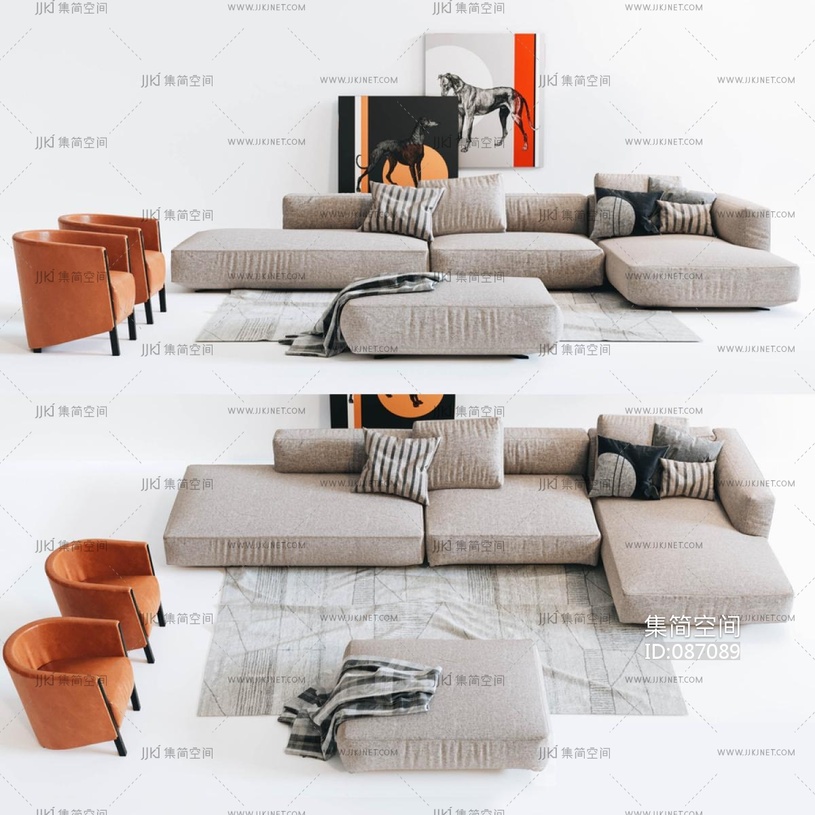 Zanotta现代转角 沙发组合, 3d模型下载 [模型ID:87089]