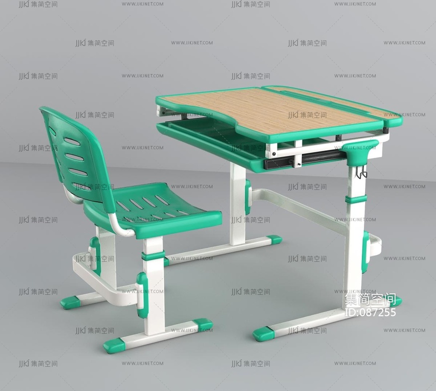 儿童书桌椅,教室课桌椅 3d模型下载 [模型ID:87255]