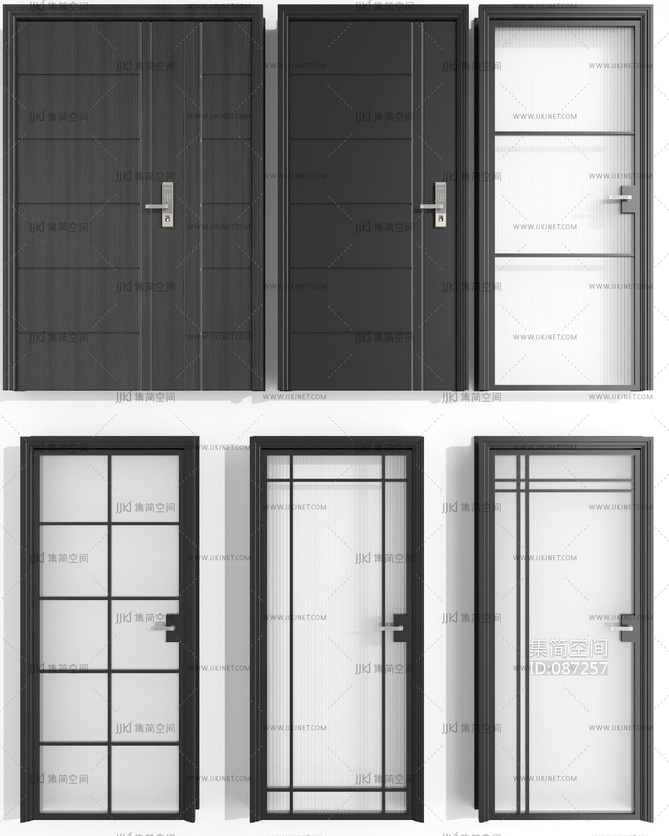 防盗门单开玻璃门,子母门 3d模型下载 [模型ID:87257]