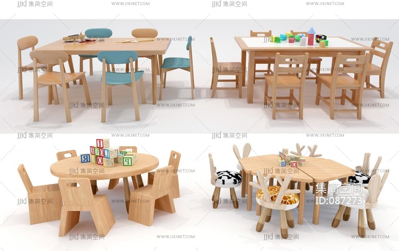 北欧儿童幼儿园课桌椅,玩具桌卡通造型桌椅 3d模型下载 [模型ID:87273]