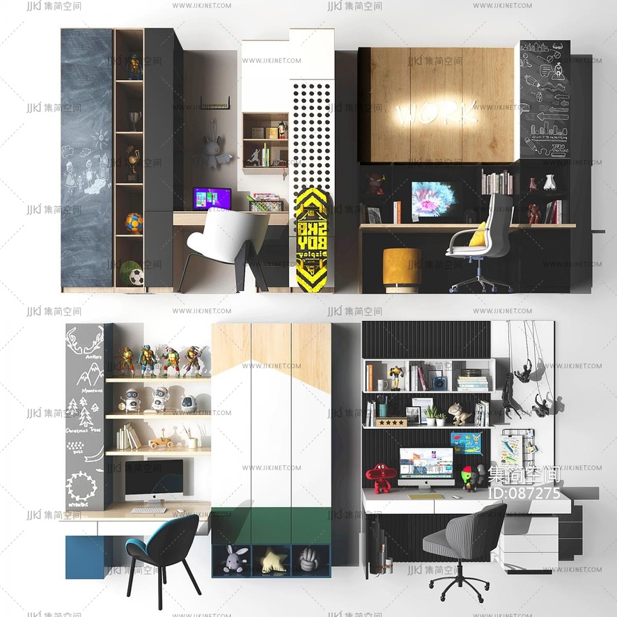 儿童书柜书桌椅,玩具,忍者神龟玩具 3d模型下载 [模型ID:87275]
