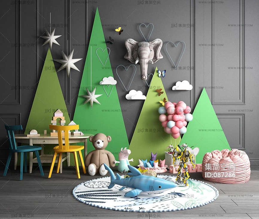 玩具玩偶儿童桌椅,玩具桌,地毯,课桌椅 3d模型下载 [模型ID:87286]
