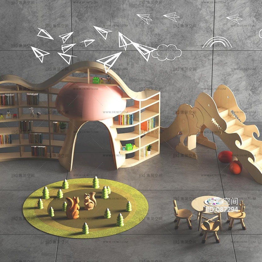 北欧儿童卡通书架书架, 3d模型下载 [模型ID:87294]