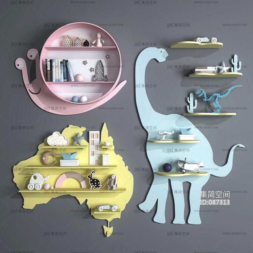 北欧蜗牛,恐龙,蜗牛动物造型儿童壁柜,吊柜墙饰 3d模型下载 [模型ID:87313]