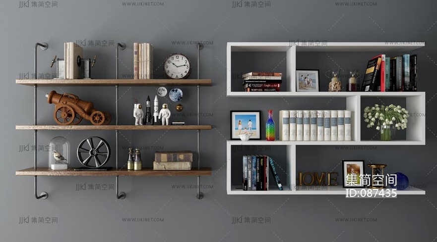 现代吊柜壁柜置物架3D模型 3d模型下载 [模型ID:87435]