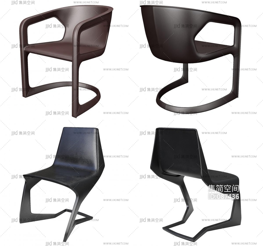 现代皮革单椅组合 3d模型下载 [模型ID:87436]