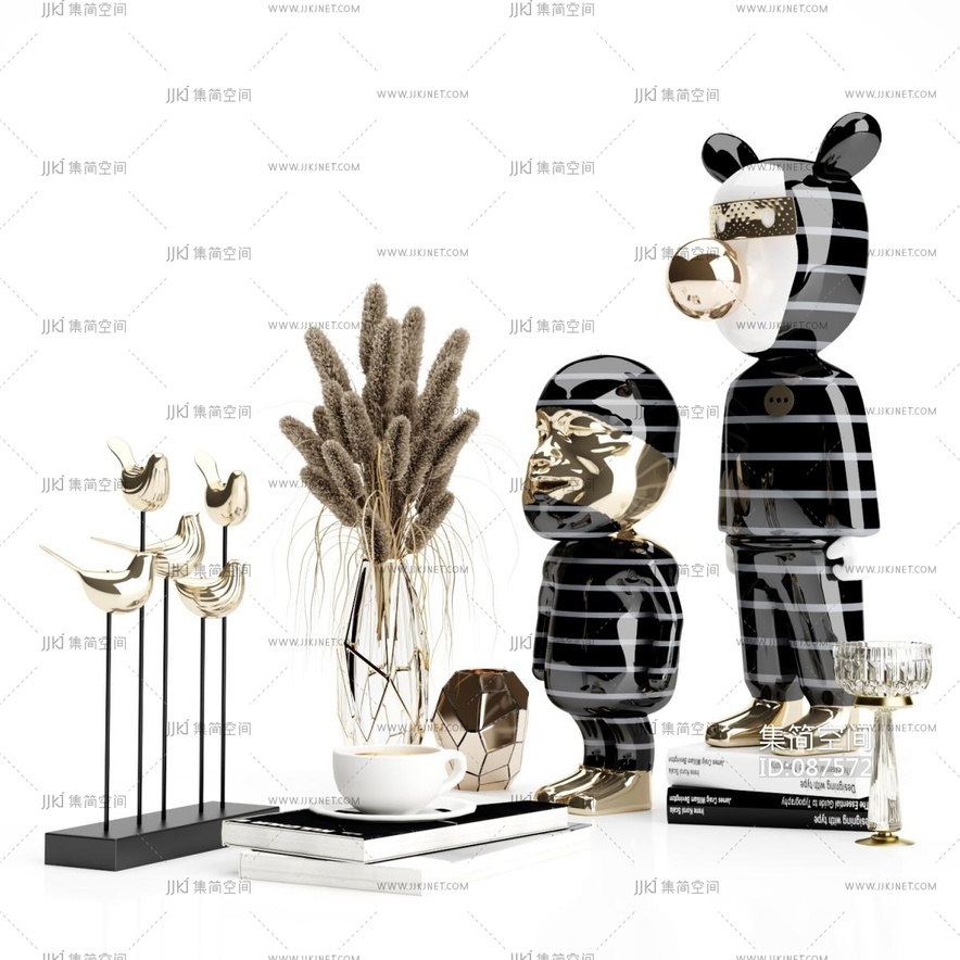 现代新中式雕塑摆件_饰品摆件组合3D模型3d模型下载