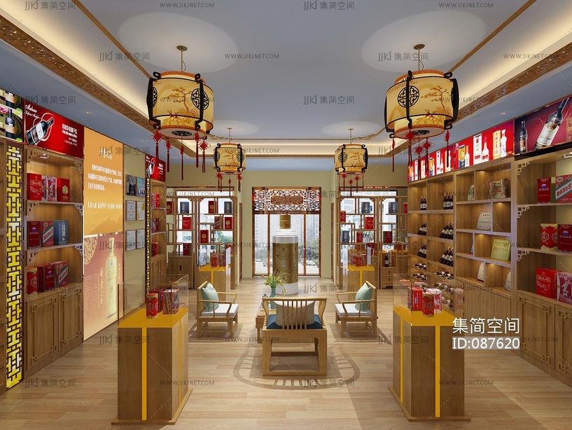 新中式烟酒白酒专卖店,展台展柜 3d模型下载 [模型ID:87620]
