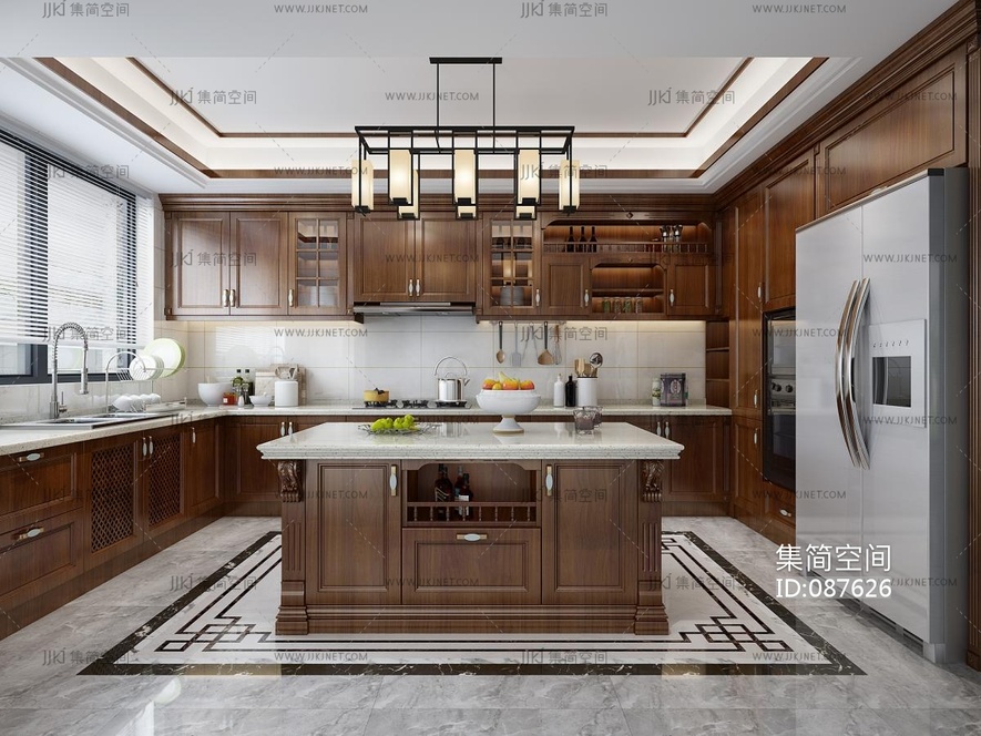 新中式欧式美式厨房,橱柜,中岛岛台,厨房用品 3d模型下载 [模型ID:87626]