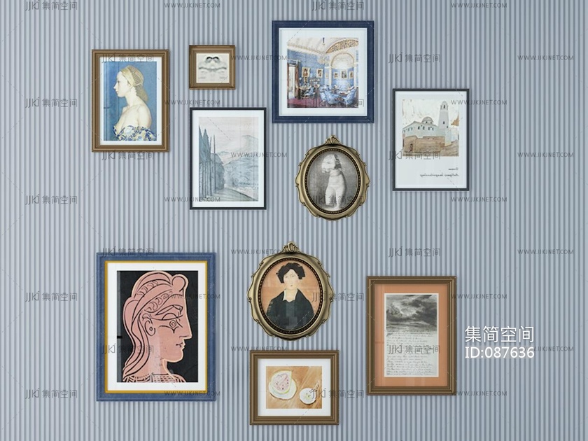 法式中古挂画_装饰画_组合3D模型3d模型下载