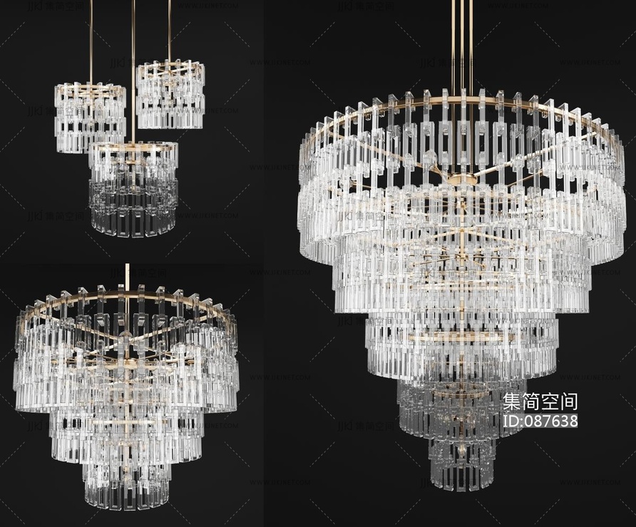 欧式水晶吊灯组合 3d模型下载 [模型ID:87638]