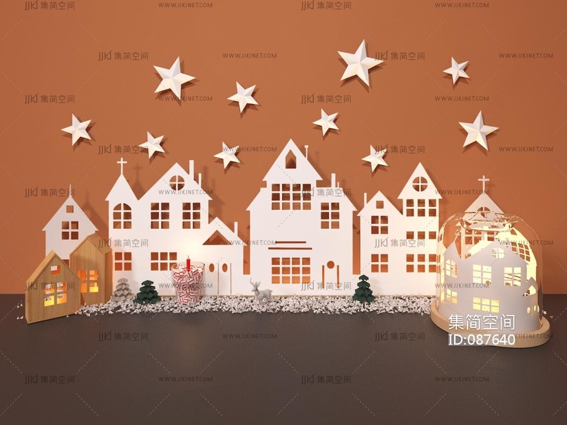 北欧儿童城堡剪纸墙饰摆件 3d模型下载 [模型ID:87640]