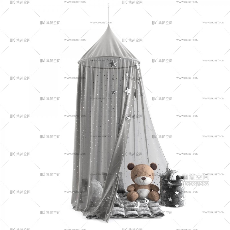 现代儿童帐篷,布满,抱枕小熊公仔 3d模型下载 [模型ID:87662]