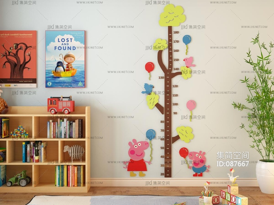 小猪佩奇儿童身高标尺,墙贴,玩具柜书柜a 3d模型下载 [模型ID:87667]