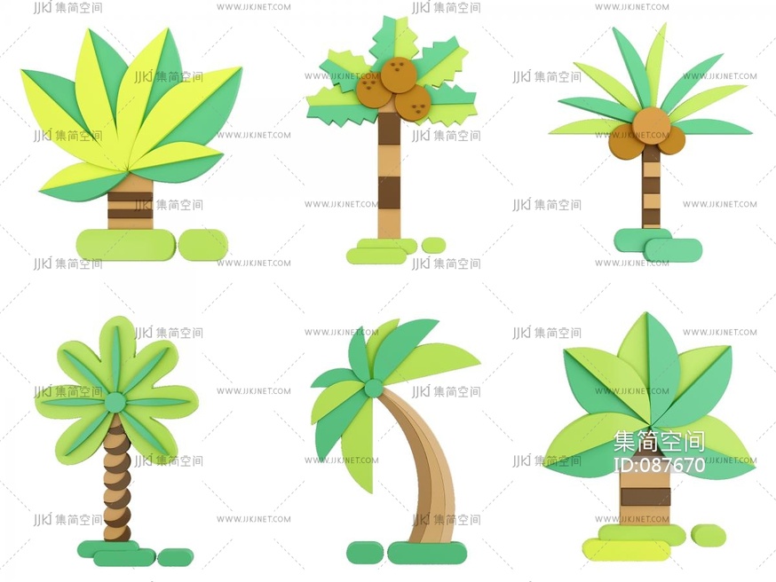 儿童椰子树卡通墙饰,造型 3d模型下载 [模型ID:87670]