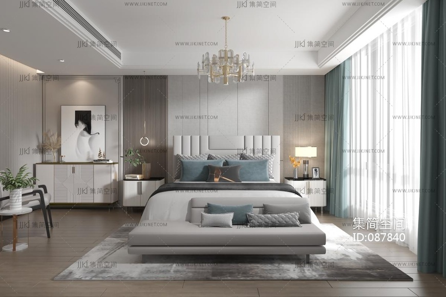 6法式中古家居卧室_主卧_飘窗卧室_高级灰卧室3D模型cr3d模型下载